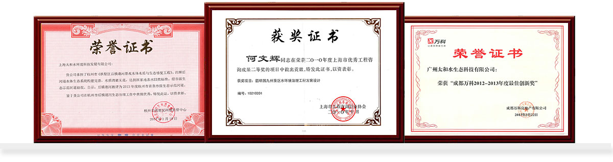 依托獨特的技術優勢和完善的服務管理團隊,公司承擔完成了多項國家級重點水治理項目及重大科技攻關項目,如:云南省滇池國家水專項、江蘇省太湖水專項、國家“十一五”和“十二五” 太湖水專項、北京圓明園、上海世博后灘、上海青草沙水庫等,并先后獲得上海市科技進步獎3次、上海市優秀工程咨詢成果獎2次及“美國年度最高設計獎——綜合景觀設計杰出獎”等。