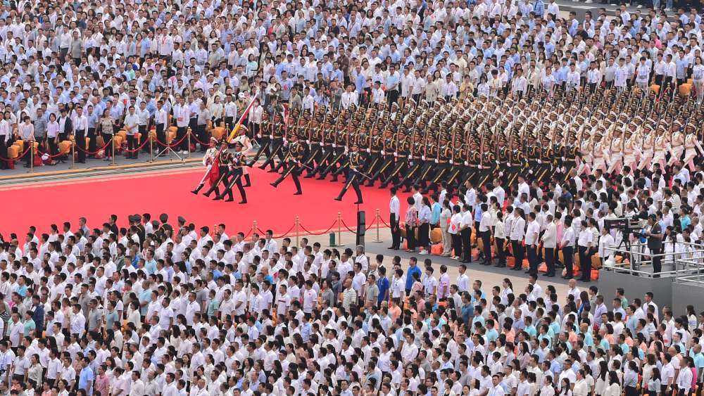 7月1日,7萬余人以盛大儀式在北京天安門廣場歡慶中國共產黨百年華誕,習近平總書記在天安門城樓發表重要講話。