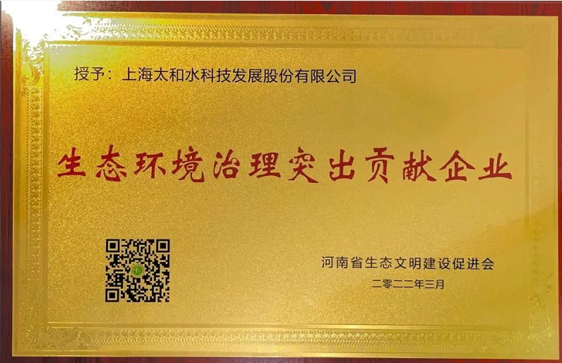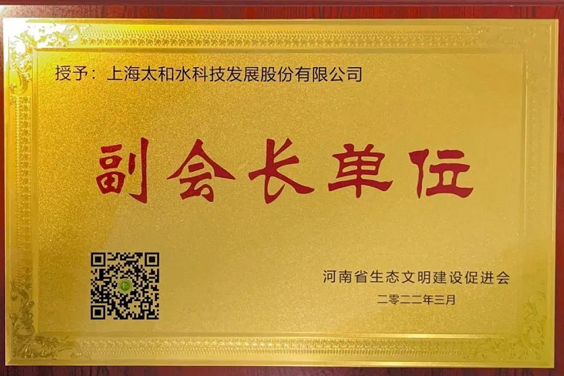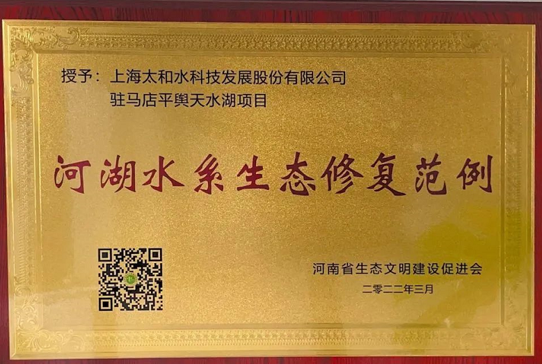 會議最后,河南省生態文明建設促進會為上海太和水科技發展股份有限公司頒發了“副會長單位”證書,并授予“生態環境治理突出貢獻企業”榮譽獎項,為我司承接治理的鄭州經開區蝶湖項目授予“城市水環境生態治理典范”獎項,為平輿天水湖項目授予“河湖水系生態修復范例”獎項。