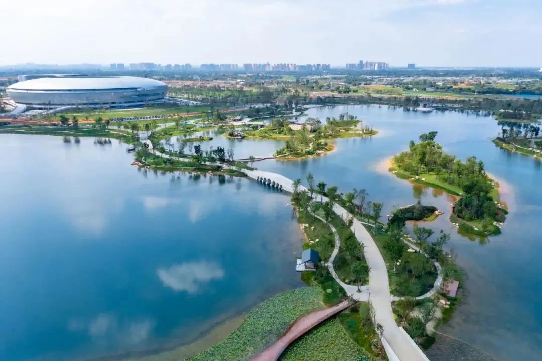 成都地處平原,缺少大江大河,亦無高峰山巔,山與水是這座城市是不可多得的生態(tài)景觀資源。經(jīng)過兩年緊張建設(shè),如今的東安湖“一湖一環(huán)、七島十二景”,巴蜀山水畫卷的生態(tài)格局已經(jīng)全面呈現(xiàn)。