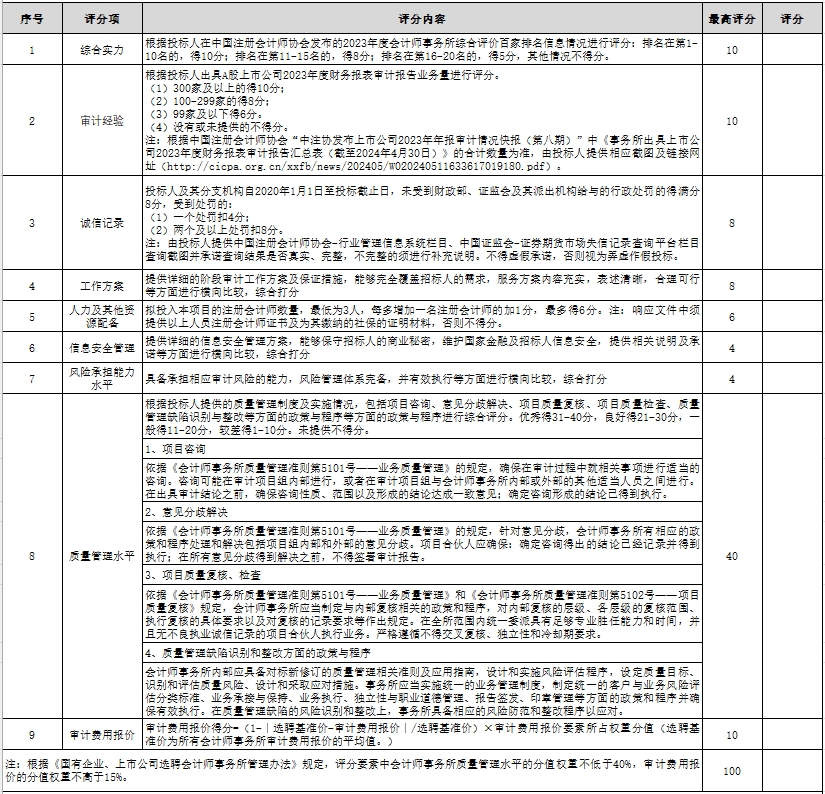 4、被邀請人資歷最低要求:被邀請人近三年(2021年1月1日至今)至少具有一項上市企業審計業績,近三年未有因執業行為受到刑事處罰情況;