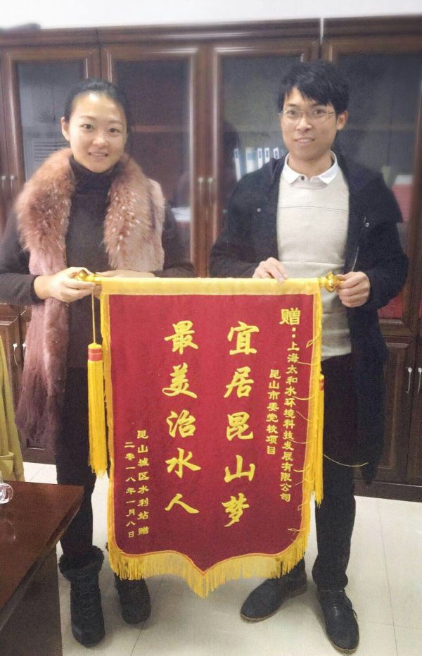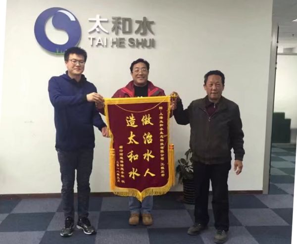 不同于窗外的寒風凜冽,上海太和水環境工程部,洋溢著一股股暖流。一面面繡著“做治水人,造太和水”“樹形象環保先行當楷模,傾真情優質服務贏贊譽”等字樣的錦旗,由各家業務代表們親手交到了工程部門負責人的手中,對工程部在項目施工中的突出表現和治理成效表示感謝及認同。
